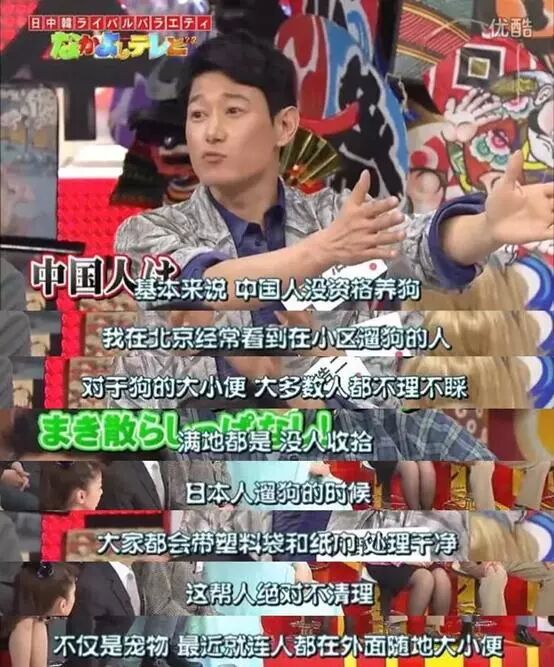 矢野浩二在节目中说到中国人是没有资格养狗的,因为北京经常看到狗总是随地大小便,主人却从来就不知道清理,甚至一些大人小孩也是随地大小便,他还顺便提了一下日本,称日本人遛狗与中国人不同,日本人手里总是拿着塑料袋和纸巾,随时给狗的大小便进行清理。