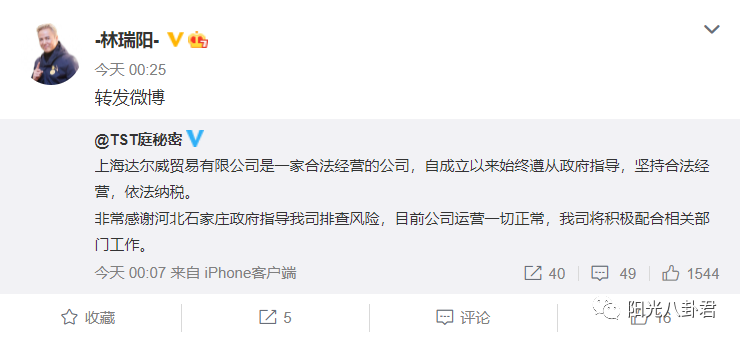 此外,在不久前林瑞阳及公司也发出回应,