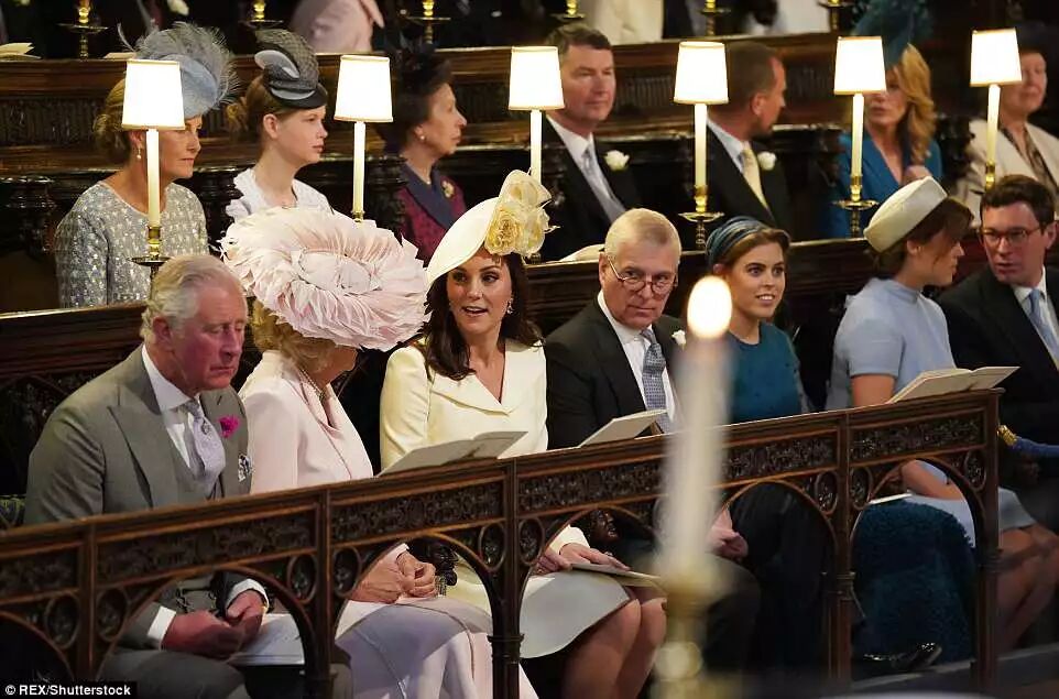 梅根的父亲在婚礼前已被确认,因病不能出席。所以,婚礼红毯上,由哈里王子的父亲、英国王储查尔斯牵着梅根走上红毯。