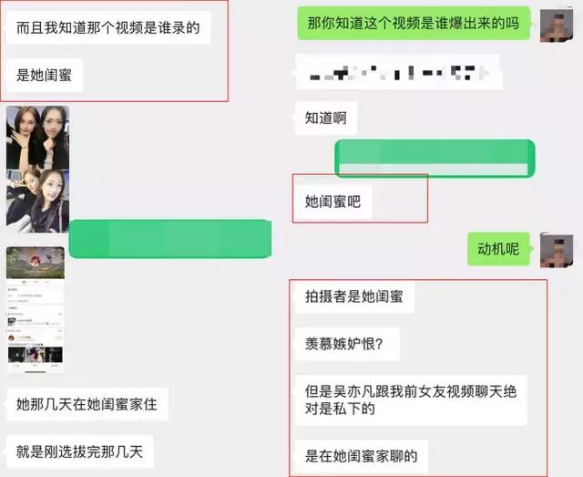 除了上面那两位(也有可能是三位,说不定曝视频的和曝音频的不是同一位呢),在恋情刚爆出了的那会,有一个妹子跳出来爆料:凡凡才不专一辣,一周前刚刚睡了我闺蜜!并附上聊天截图N张↓
