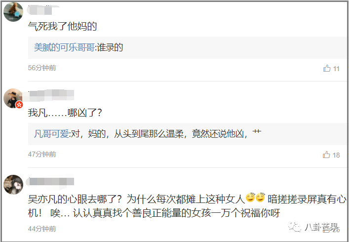 随后,“前男友”称曝出这段通话视频的人应该是韩其原的闺蜜,动机可能是“羡慕嫉妒恨”,而且他称吴亦凡与自己前女友聊天是私下的,并且是在她闺蜜家聊的。