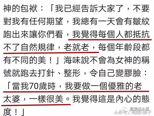 不过周海媚对于年龄和外形一直很看得开,她接受港媒采访时曾说,希望网友不要对她冻龄抱太大期望,自然规律谁也改变不了。当她70岁时,要做一个优雅的老太婆。