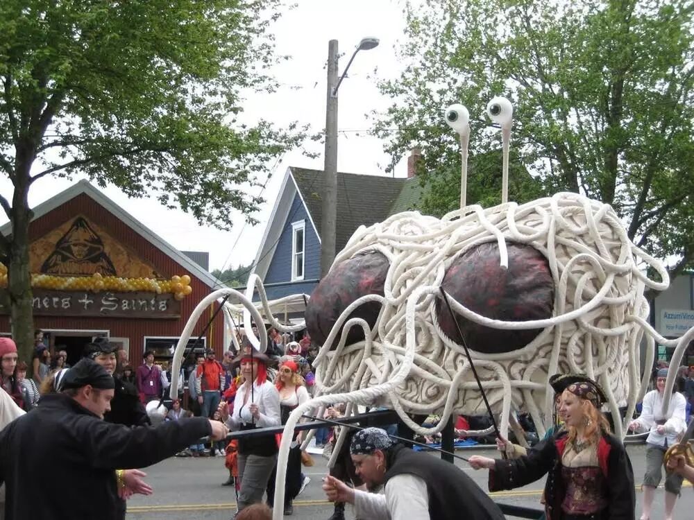 宗教人士不好惹,科学和理性的信仰者们又该如何怼回去呢?2005年,24岁的俄勒冈州立大学物理学士毕业生博比·亨德森(Bobby Henderson)给堪萨斯州教委发了一封关于飞行面条怪物的公开信,声称他的宗教和那些支持“神创论”的宗教一样具有合理性,他要求他的“飞面神教”同样应该纳入公立学校的课程之中。