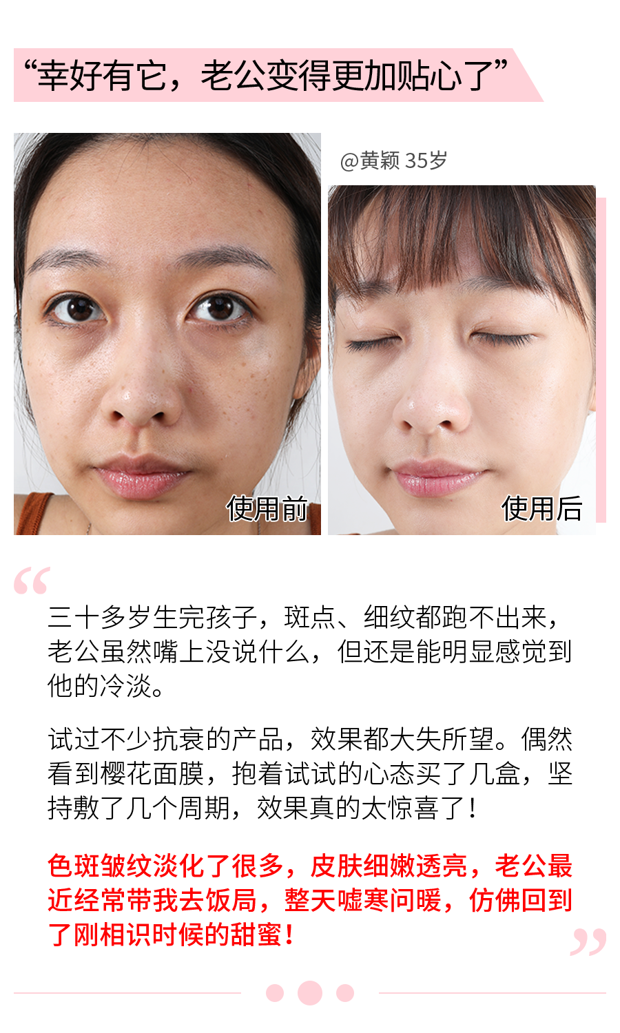 为了验证樱花面膜的功效,我们邀请了35岁主妇苏苏进行实测,并记录了28天的肌肤蜕变史。