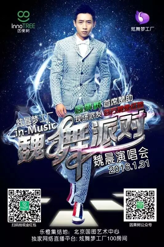 此次因果树与炫舞梦工厂联袂合作,特别为魏晨演唱会策划了“魏你而来 壕送百万”的微信红包派送活动。不管你是亲临现场还是线上收看直播,届时只要密切关注现场及直播屏幕上不定时放送的红包二维码,扫码输入手机和验证码,即可立刻领取1至88元不等的微信现金红包。