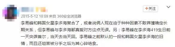 有营销号爆料称两人又复合的迹象,李易峰在李多海419生日的前一天出现在韩国首尔,当天去当天回!