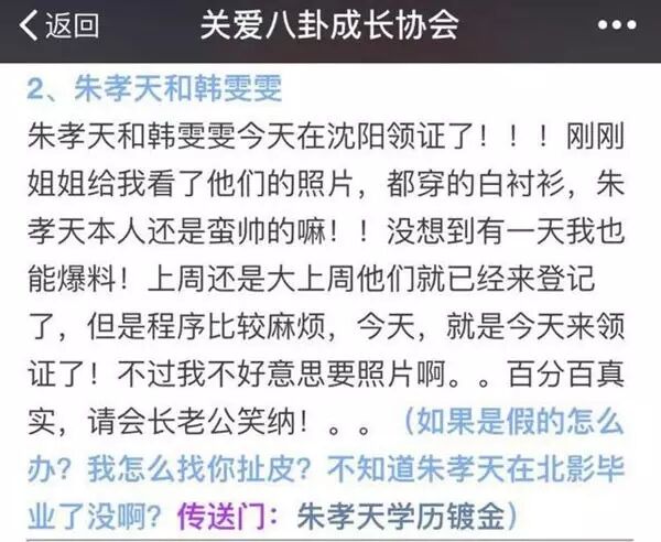 3月16日早晨,据知名公众号“关爱八卦成长协会”爆料,朱孝天与女友韩雯雯在沈阳秘密领证,已经在筹划婚礼,更有粉丝拍到朱孝天女友全程陪同他录制一档健身节目《燃烧吧卡路里》,甜蜜指数简直爆表。网友看到后纷纷留言:“深深记得《流星花园》最火的时候到处都是F4的海报”、“西门终于结婚了,小优怎么办”等等,令人感慨。