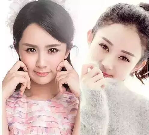小圆脸是赵丽颖的标配,而萌萌的杨紫与遮住下巴的赵丽颖也有几分相似,卧蚕与眉毛的画笔惊人的一致。