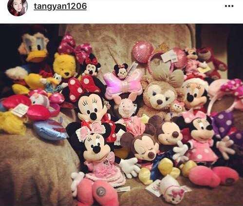 闺蜜唐嫣呢,则是晒出了一堆迪士尼的玩偶,满满的少女心呢。