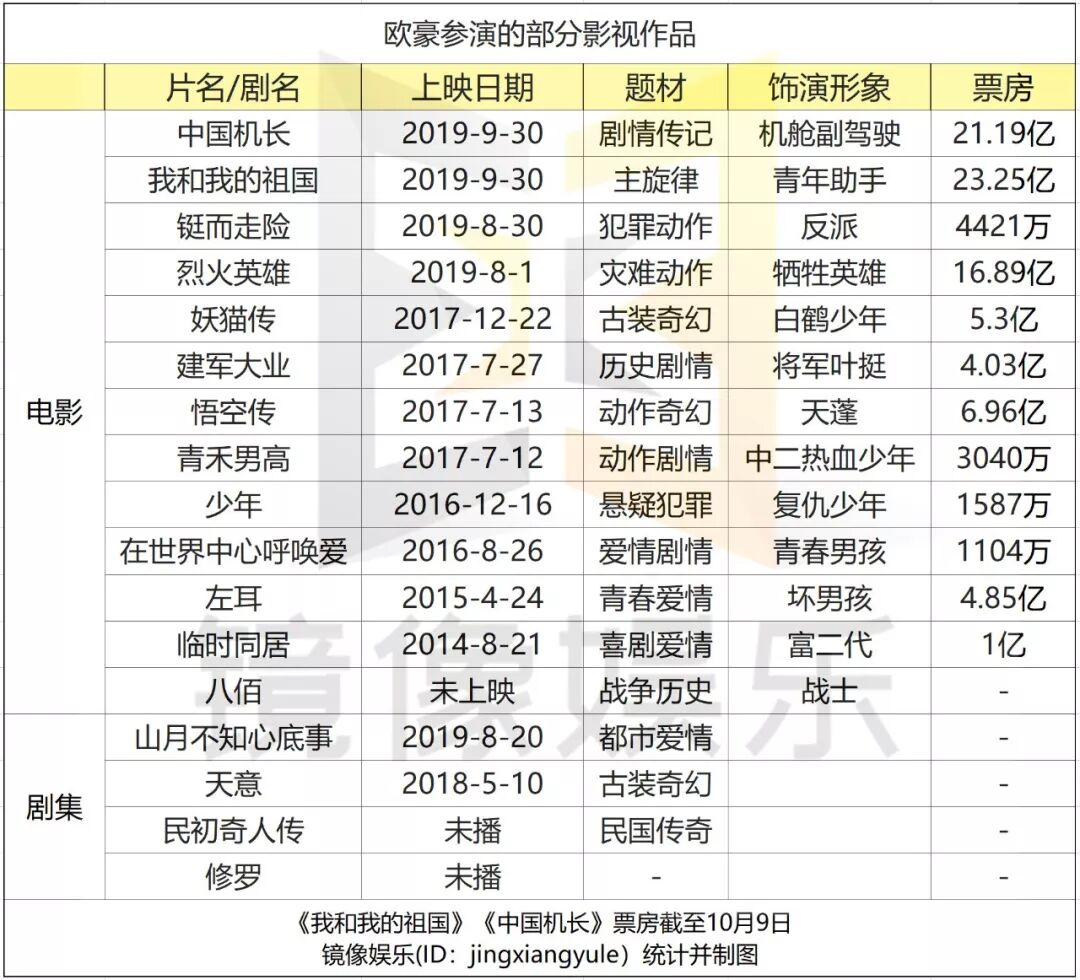 一方面,市场越来越排斥流量型艺人;另一方面,祖国70周年的关键节点即将到来,欧豪的正能量硬汉小生形象被市场认可之后,也为其打开了主旋律“红色”道路的新入口。