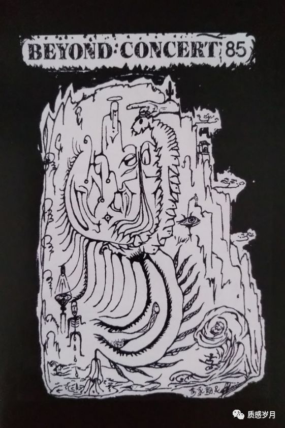 家驹这首填词里既有江湖恩怨、梦境虚幻,又有神魔玄幻,还有时空穿越,有着天马行空令人捉摸不透。在他生命终点前写下的这首高深莫测的歌词,感觉与他85年为BEYOND首个演唱会画的海报,有些异曲同工的神秘内涵关联,大概这就是艺术天才的思想有别于常人的一种体现吧。