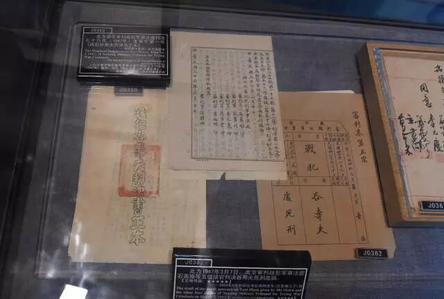 侵华日军南京大屠杀遇难同胞纪念馆陈列的《战犯谷寿夫判决书正本》复制件和南京审判战犯军事法庭石美瑜等五位法官判决谷寿夫死刑的底稿。新华社记者 孙参 摄