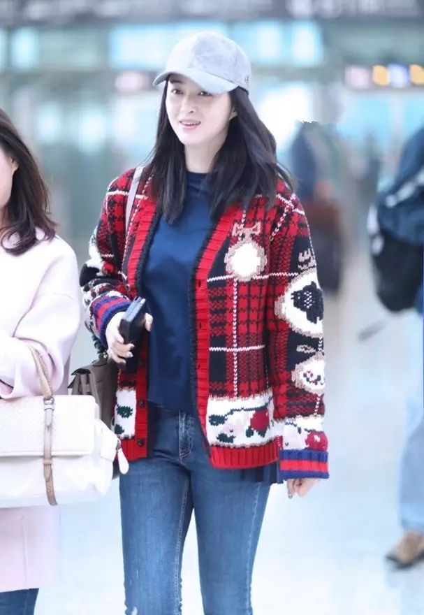 蒋欣这身外套+牛仔裤+球鞋的组合,日常到家了,本没有什么亮点,但是她选择了格子元素的针织外套点燃了整体的调性,减龄显白的效果很明显,看起来好像少女!