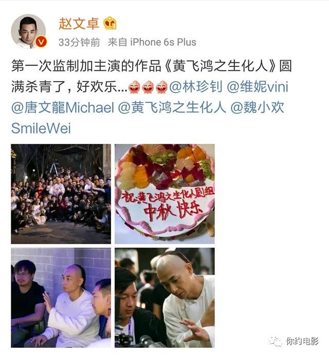 9月15日,《黄飞鸿之生化人》开机,在剧组人员一个多月的努力下如今该片也已杀青。赵文卓一连饰演多次“黄飞鸿”能否吐气扬眉?让我们一起拭目以待吧!