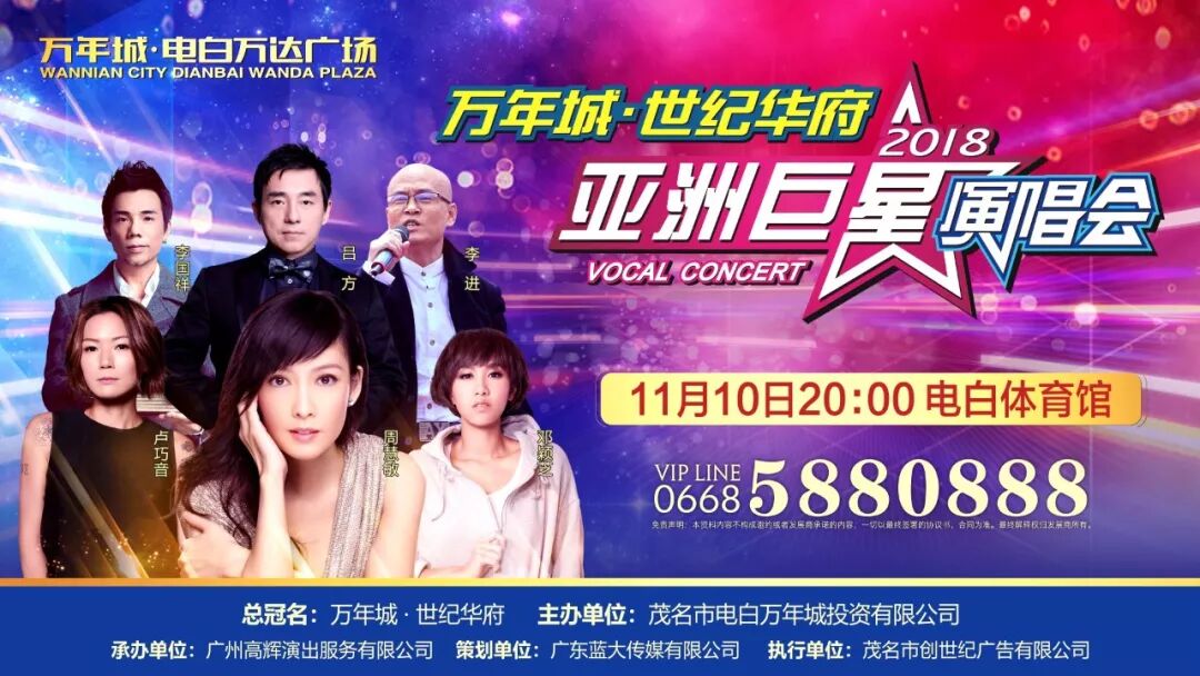 本文的留言功能将于今晚21:00正式开启,请留言说一句想看演唱会或者祝福演唱会、万年城·世纪华府的说话,前100条留言将会入选精选留言,在前台显示出来。截至明天(11月6日)中午12:00,前台显示的留言中,排在最前面的人气最高的10条留言者,即可免费获得门票1张!中奖者凭我们发送的中奖通知,到电白迎宾大道万年城·世纪华府营销中心领取门票。