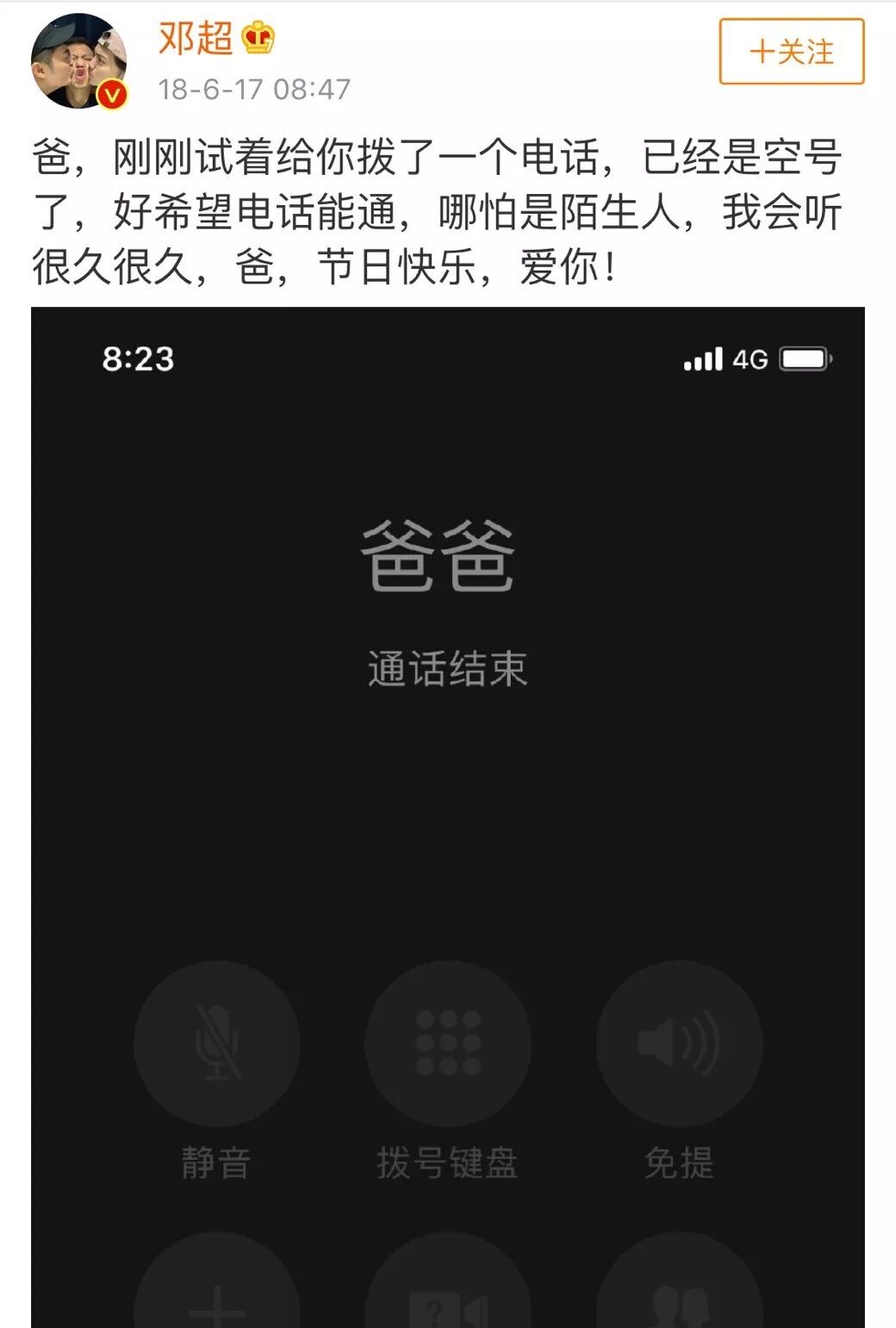 在2018年父亲节的那天,邓超发了一条微博:爸,节日快乐,爱你!