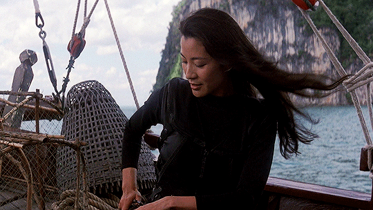 带着这份天生的自信,她塑造了一个与邦德没有床戏、全程火力全开对打的另类邦德女郎,只在电影结尾留下一枚令观众回味无穷的吻。