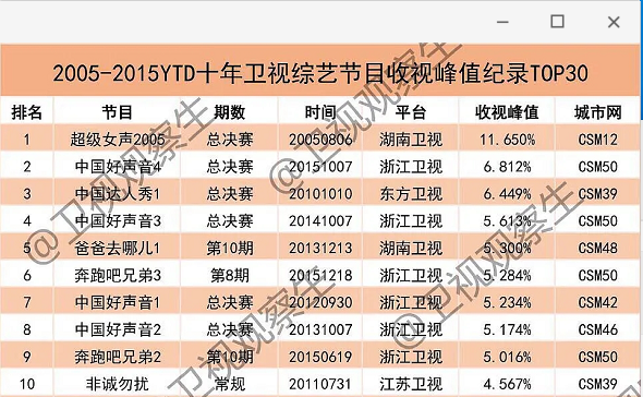 总决赛的收视率破11,是蝉联10年的收视神话;