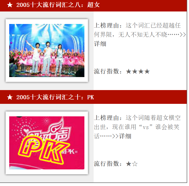 “超女”、“pk”选入2005年10大关键词;