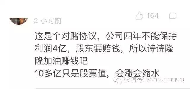 当然只是说起来吓人。毕竟不是真金白银打款到刘诗诗户头,尤其是这个交易还有对赌性质。