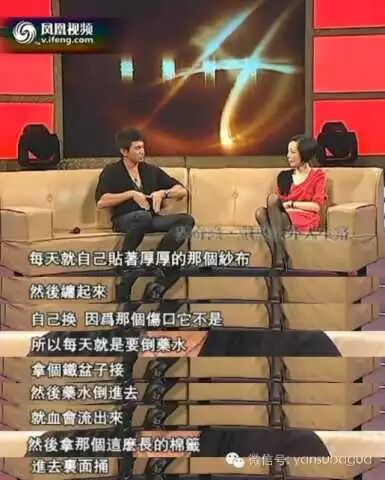 腹膜炎,肠子爆掉了,伤口还没有好又要回去继续拍戏,每天自己换纱布上药,用长棉签在里面捅
