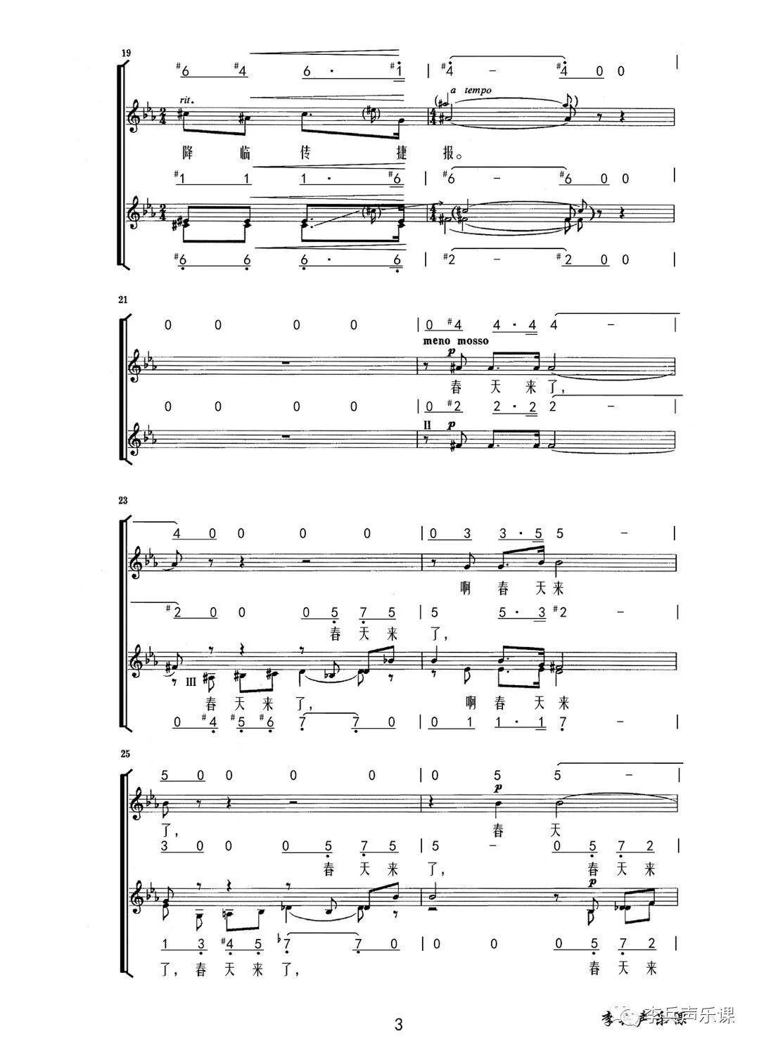 作品描写了北国大地已回春,残雪尚未化尽;而冰河融解.潮水拍岸而来,成为春天的信使,给人间带来希望和欢乐。