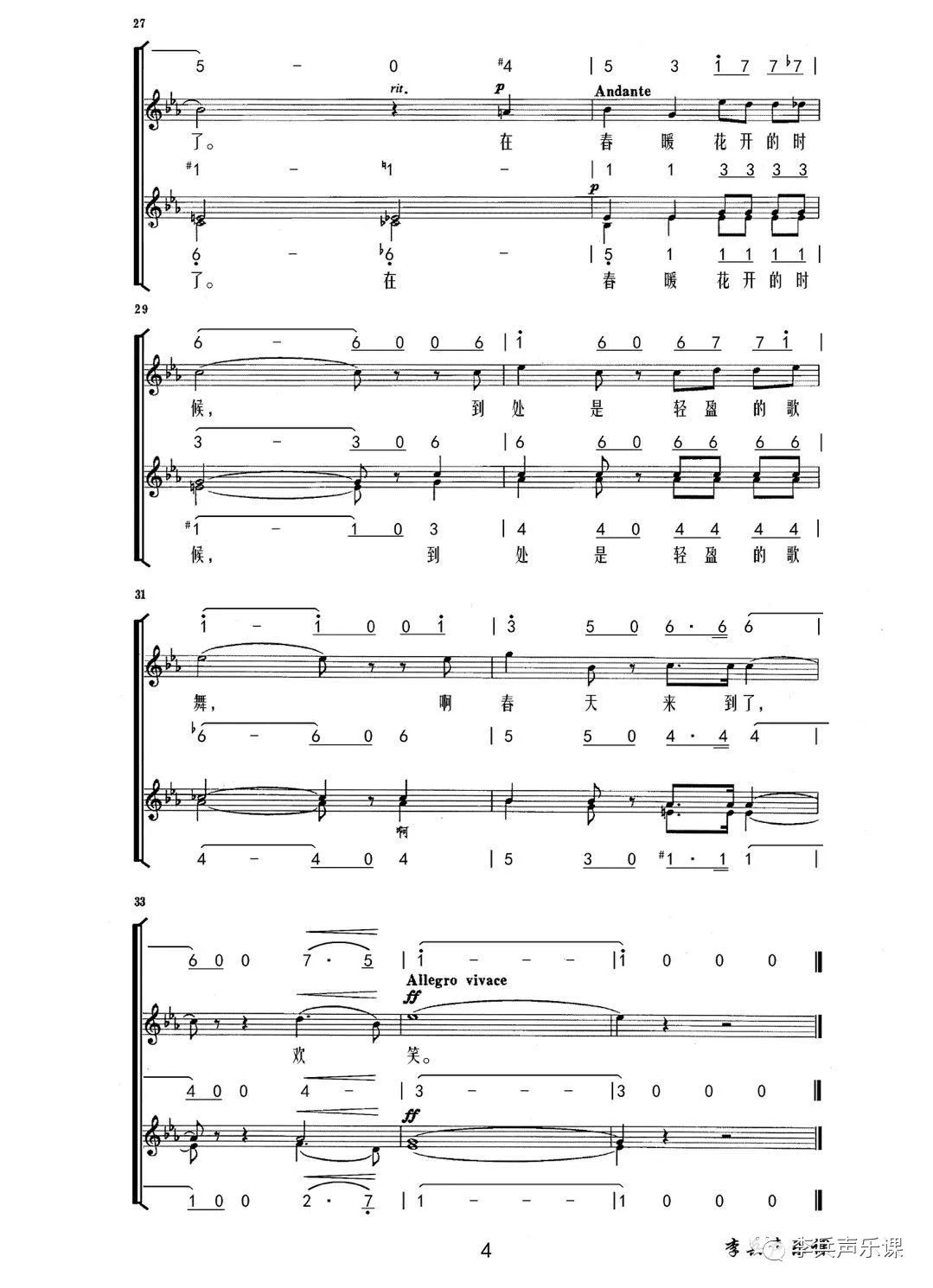 这是拉赫玛尼诺夫最明朗、最乐观的一首歌,从一开始就通过音响造型的手法,在钢琴上把春潮冲腾.喧响的形象有声有色地表现出来。滚滚翻卷的音流衬托着奔放有力的歌声,咏唱了春潮不可遏止的活力。