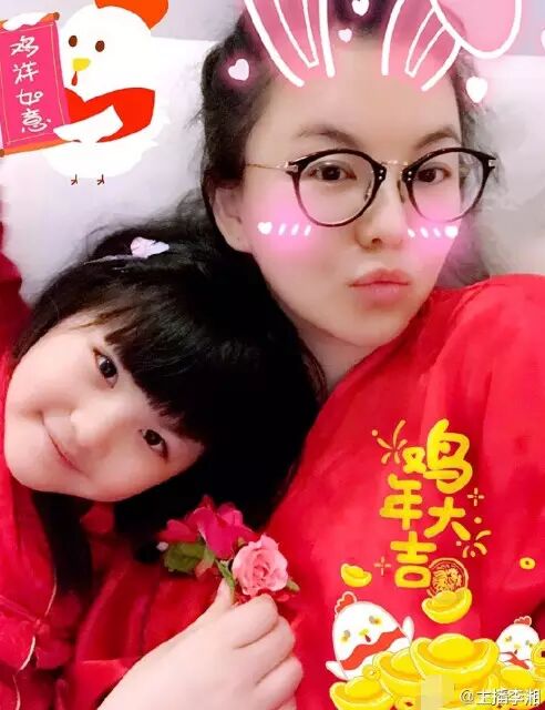 李湘晒出和女儿王诗龄的卖萌照,称“祝福大家鸡年大吉!欢欢喜喜过大年!”