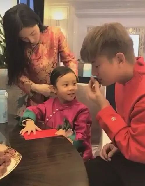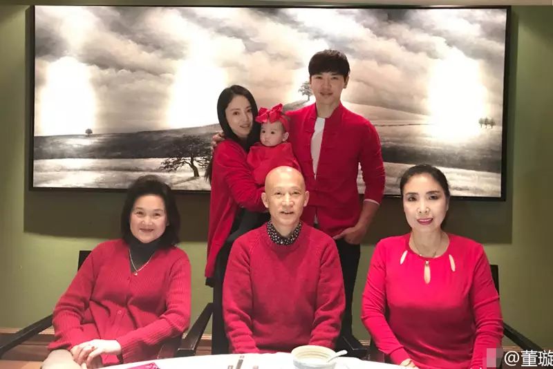 董璇微博晒出两张全家福给大家拜年。照片中全家老少身着红衣,十分喜庆。 董璇女儿小酒窝在妈妈怀里笑得甜。