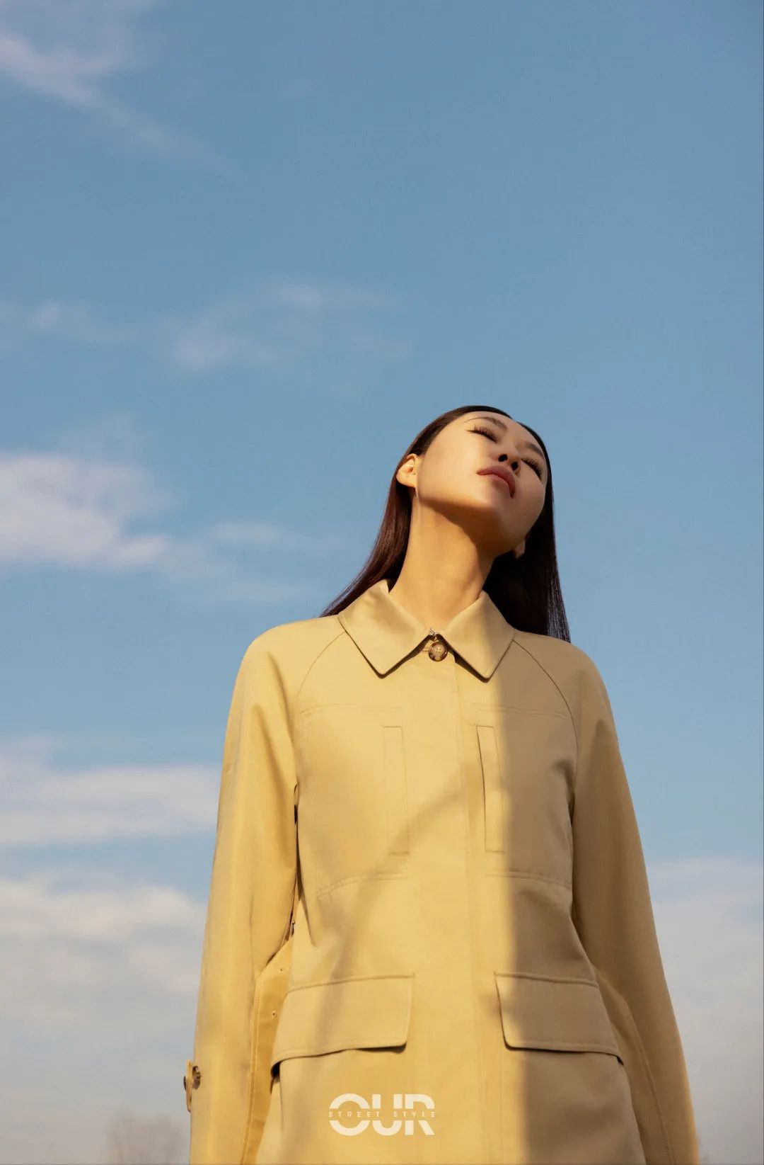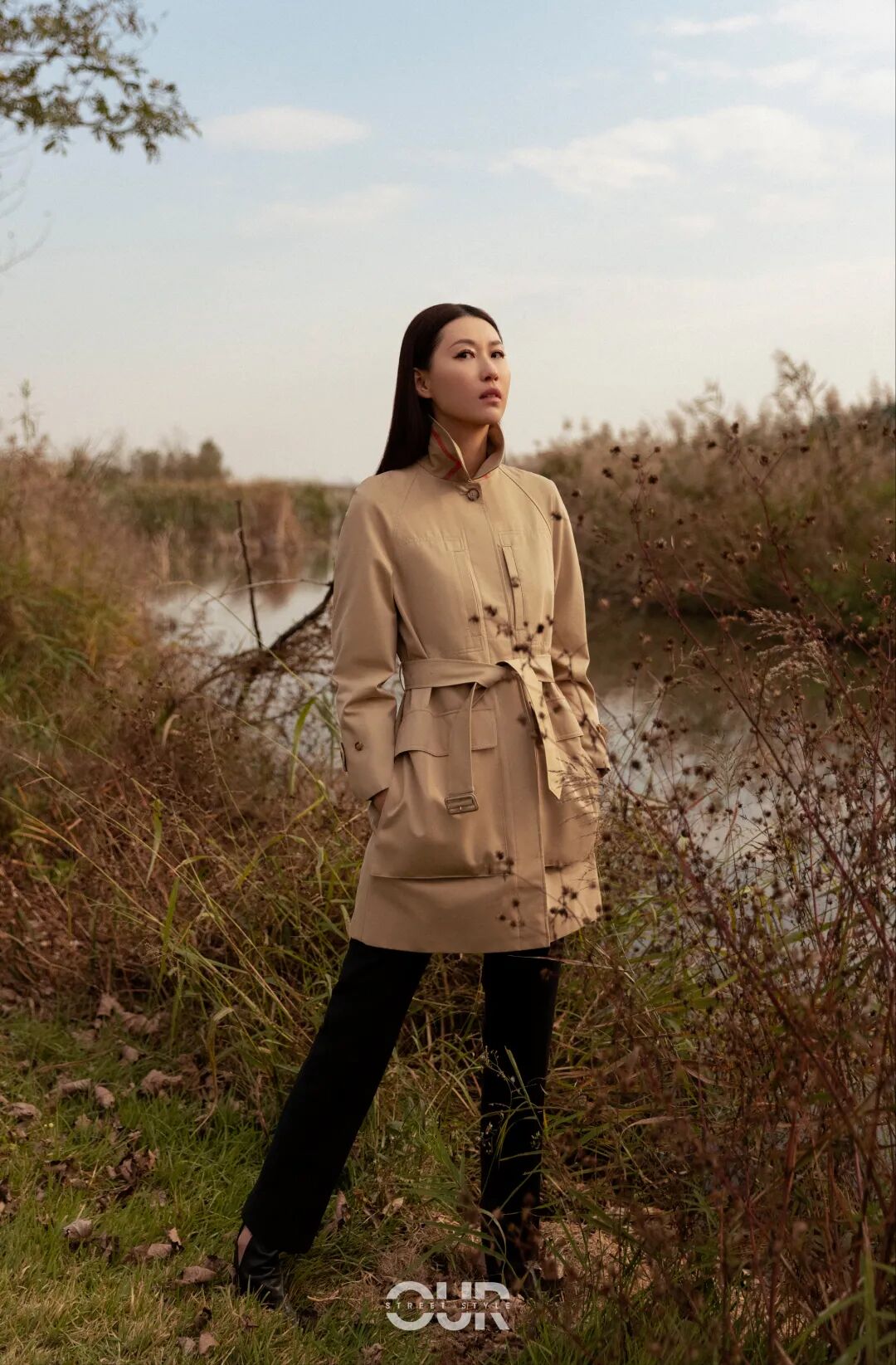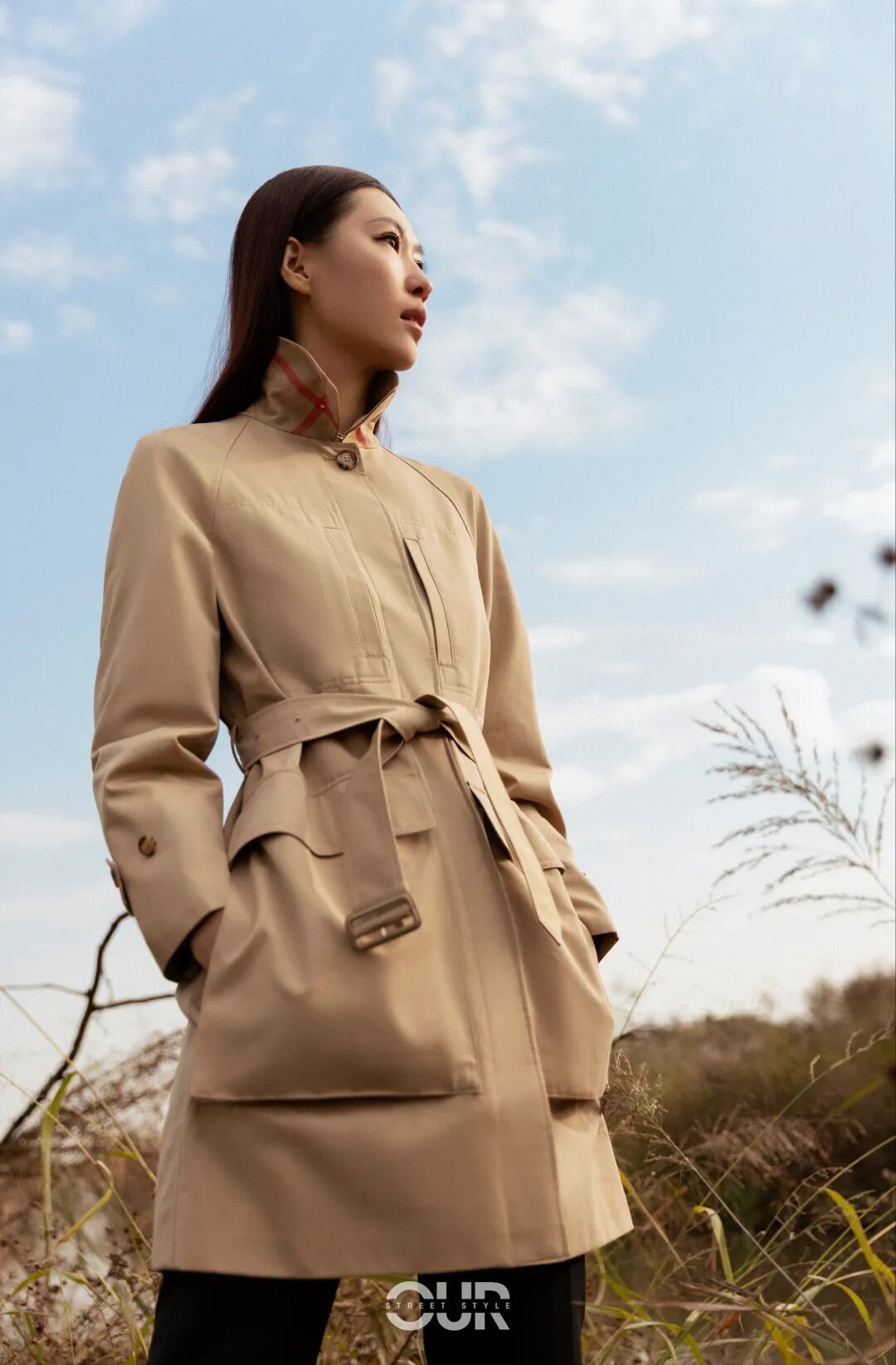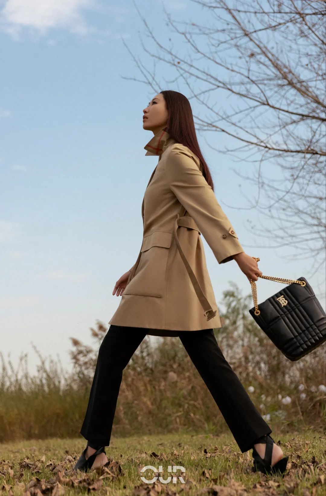 我们的晖姐身着棉质嘎巴甸束带轻便大衣,在晴好天气的傍晚感受自然里的缤纷秋意。