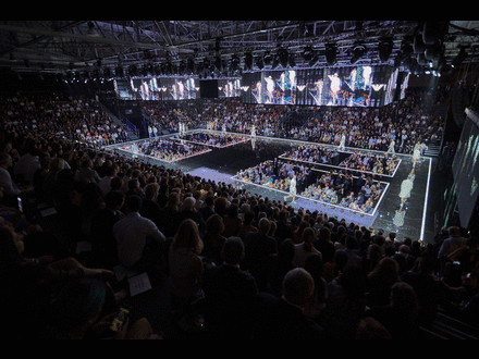 这场秀共设置了 2000 个座位,T台中央的 4 个池坐,一共容纳 2300 名观众