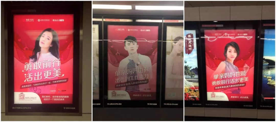 同期,“妈妈不容易”系列地铁广告发布,关爱单亲妈妈的声音走到了从线上走到了线下。