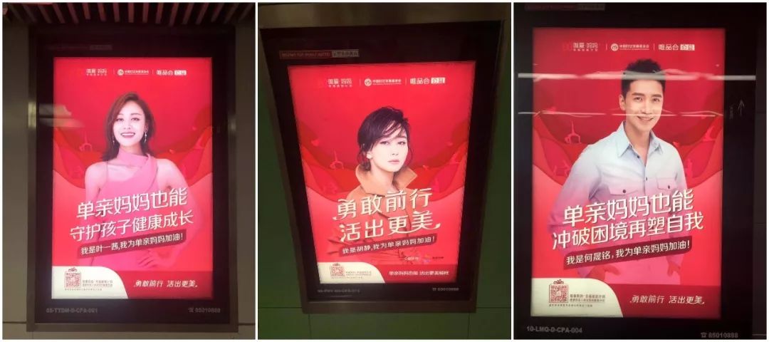 线下,“勇敢前行,活出更美”明星系列海报在户外大屏、楼宇电梯、地铁以及公交电视站点投放,使更广泛的社会公众了解到真实的单亲妈妈群体,消除刻板印象,为她们加油鼓劲。