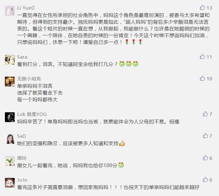 “关注单亲妈妈的生活与职场环境,给她们更多的关爱与理解。”