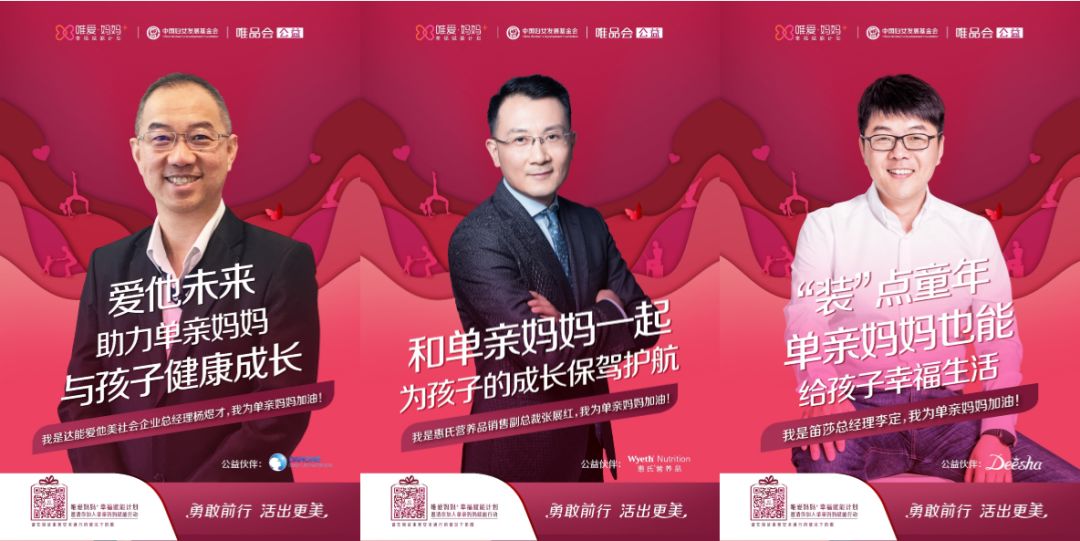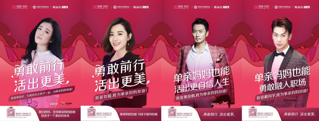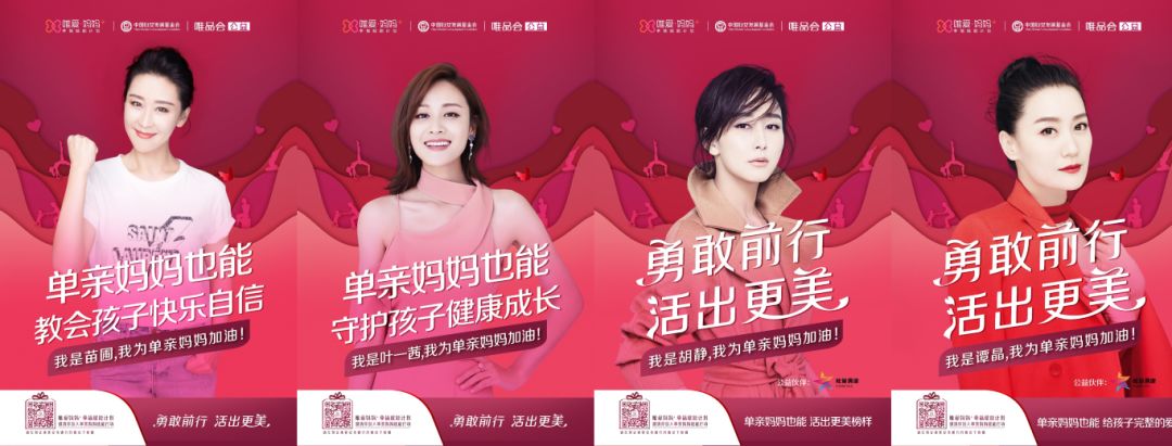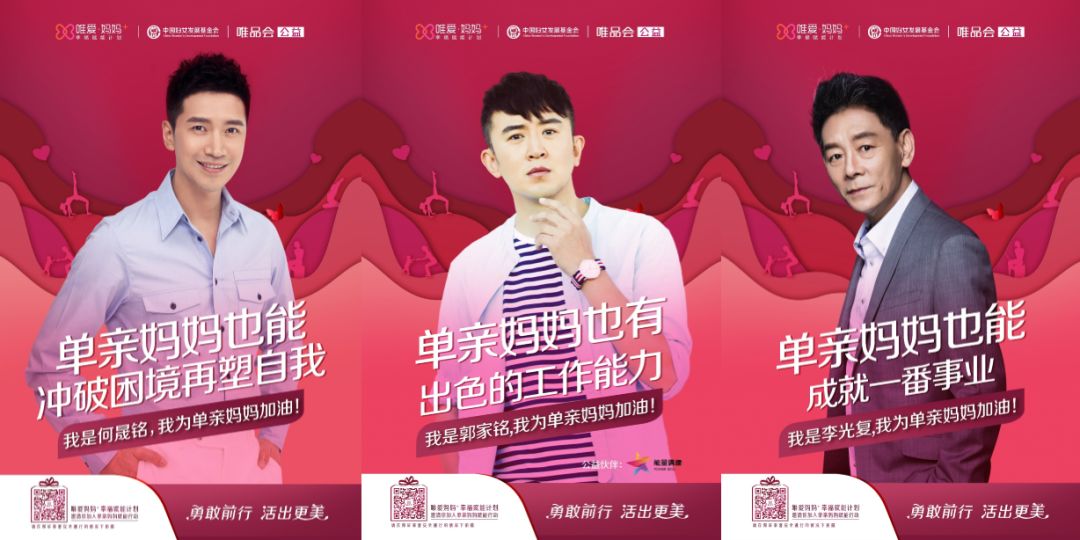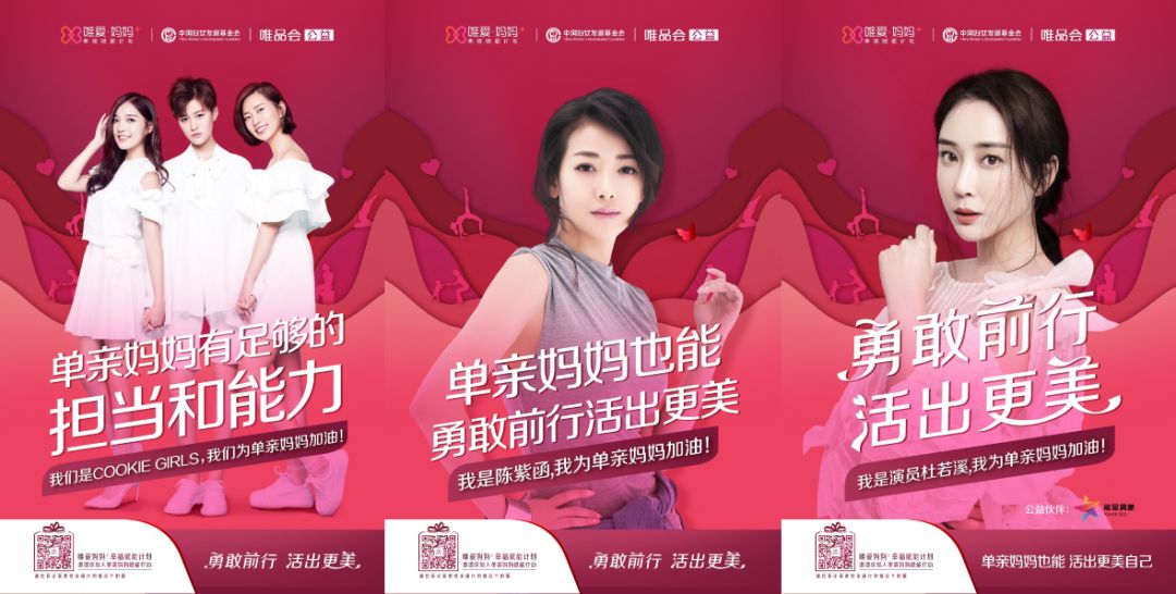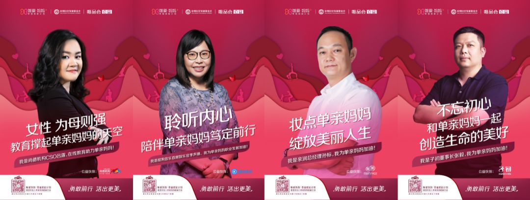 除了明星之外,来自唯品会、酷狗音乐、智联招聘、达能爱他美、惠氏、亲润、笛莎、小猪班纳、子初、尚德机构、全优加、路通建设集团等企业高管也纷纷表态,形成声量合力,鼓励单亲妈妈“勇敢前行,活出更美”。