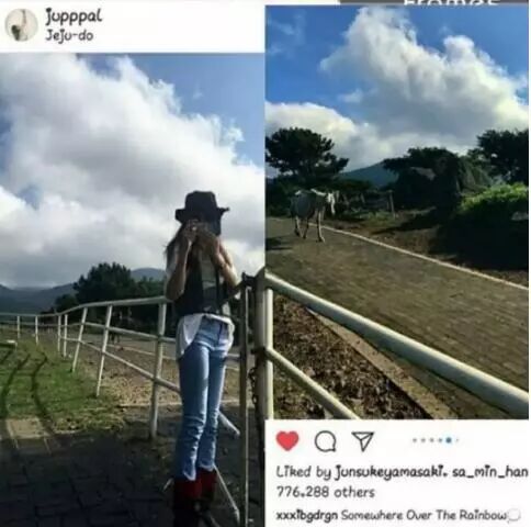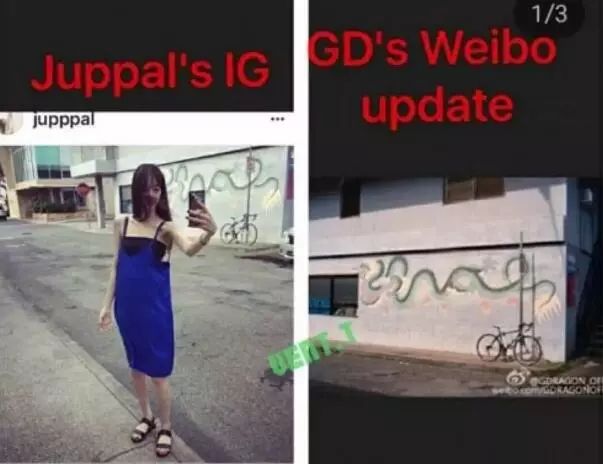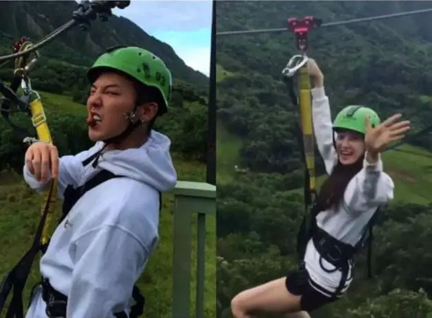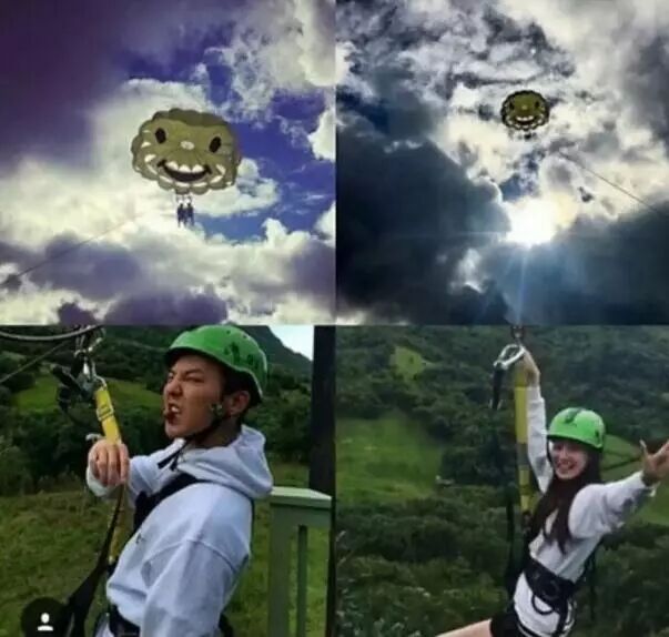 首先是李珠妍去年10月份在INS晒的吊绳索下滑照片,还有一张是搭着伞高飞到天空的照片,这两张照片权志龙也在微博差不多的时间段晒过。当然,你要说好朋友相约同地点游玩很正常,那也说得过去。