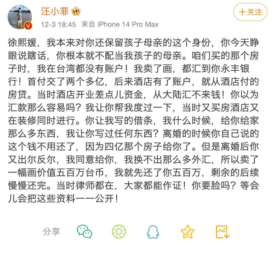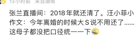当然,记忆混乱的也不止她一个,比如汪小菲说,借钱开酒店的事,离婚时已经说好不用还了。