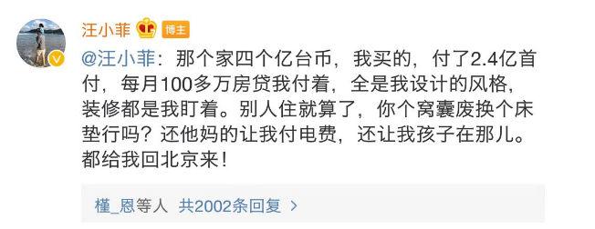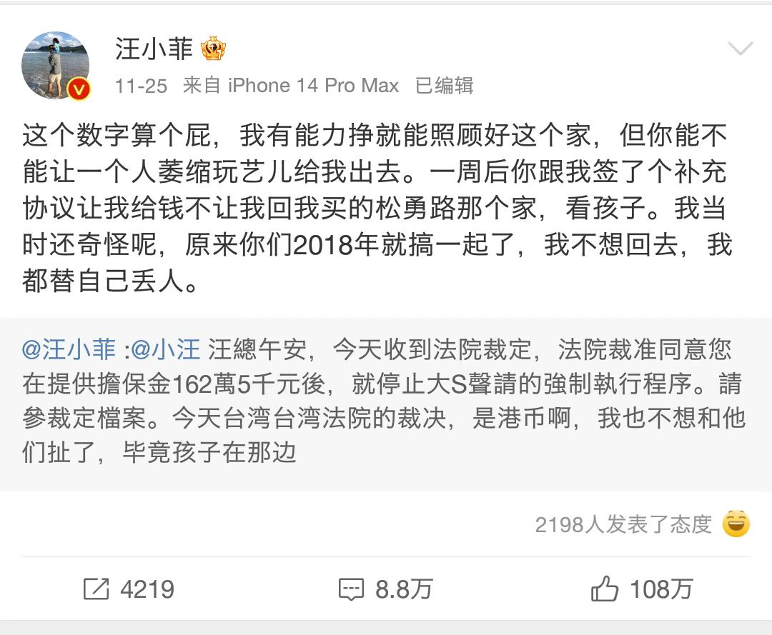 至于说没花在孩子身上,只能说那是大S的问题,不能说汪小菲就多么伟大。