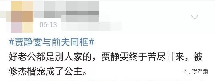 贾静雯在上一次婚姻里很狼狈,现在则生活得很好,所以很常见的评论是赞美修杰楷给贾静雯带来的改变:“她终于苦尽甘来,被修杰楷宠成了公主。”