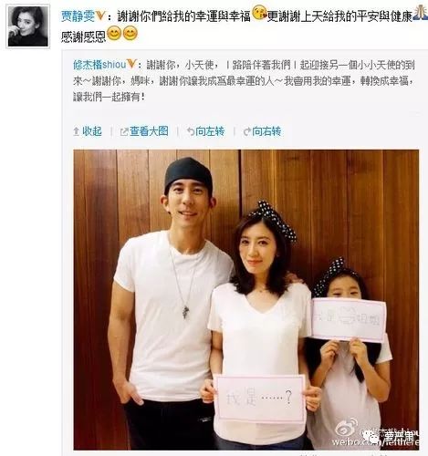 2015年贾静雯宣布怀孕(那时怀的是二女儿咘咘),引发过社交网络的轰动,大家惊觉:诶,被离婚案所困的贾静雯,现在好幸福?