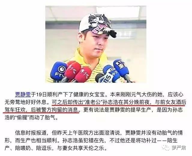 但这段婚姻早就暴露出问题。2005年6月贾静雯临盆在即,孙志浩酒驾被拘,车上是自己的前女友,事后孙志浩澄清是同学的朋友。