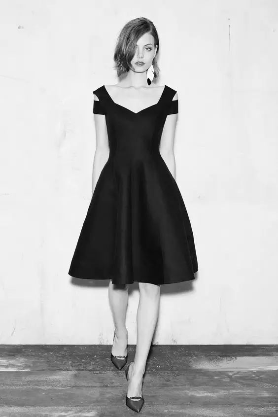西服式小黑裙搭配高跟鞋,优雅干练,而且礼服式的小黑裙真的很显瘦!