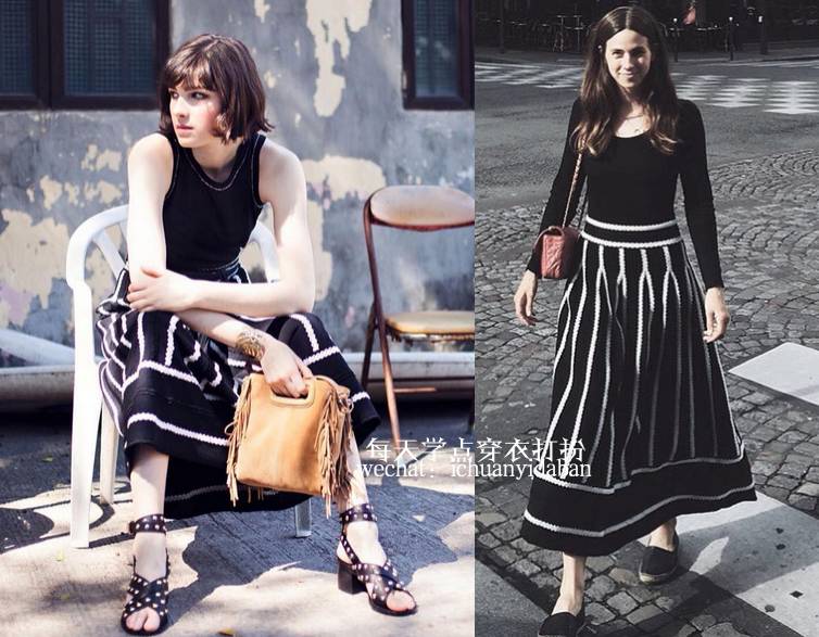 摩登大气的黑白宽条纹小黑裙,分分钟拉长腿部比例,轻松游走初秋时髦。