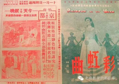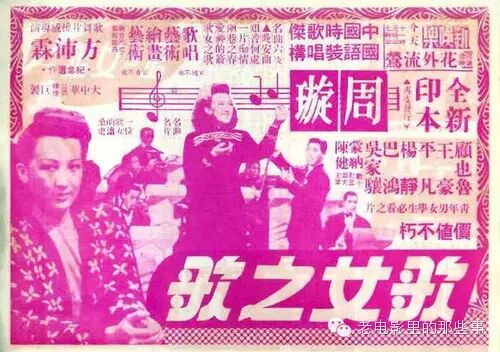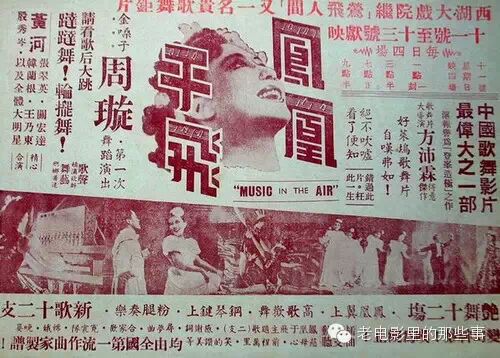 记载中的中国歌舞片第一炮,是天一公司李萍倩导演,由黎莉莉王人美主演的《芭蕉叶上诗》 (1932),然而目前早期比较详细的图片资料,还是只能从这张《何日君再来》的电影广告及宣传单上看到。接下来,中国电影中的歌舞片就不少了,民国上海时期的,包括陈云裳名作《云裳仙子》(1939),李丽华主演的《万紫千红》(1943),欧阳飞莺主演的《莺飞人间》(1946),还有周璇本人的《凤凰于飞》(1944)和《彩虹曲》(1953)等。