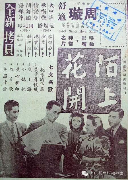只要周璇的电影拍完,南洋一带关于她的电影广告及中英文宣传单就出来了,有趣的是周璇有些影片的名字到南洋就已经改了,如果你察看周璇的电影作品表,肯定不会看到像《陌上花开》(1947)、《生死鸳鸯》(1941)等名字的。这些电影片名和在民国上海放映时的电影片名是有出入的,也许是为了好卖也许是吸引眼球?