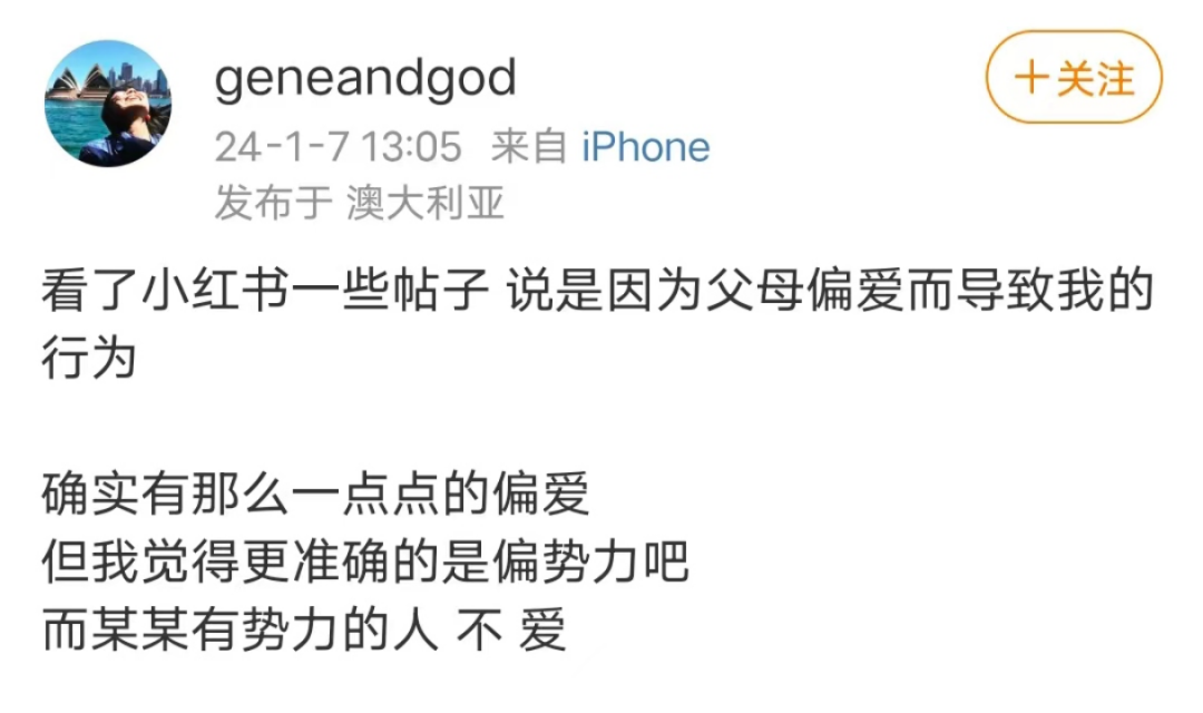 “看了网上一些帖子,说是父母偏爱而导致我的行为。