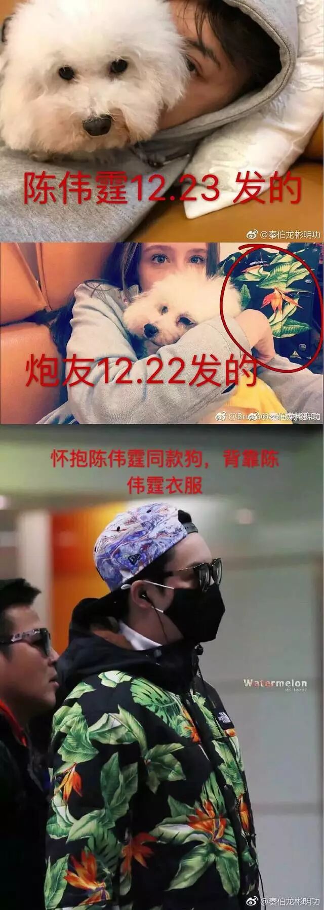 这是强大的女粉丝们扒出来的,这位女模特与陈伟霆拥有一条狗狗,而且陈伟霆的衣服还落在女方家,陈伟霆在微博Po出的照片根据地毯也能分辨出是在女方家。