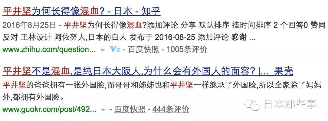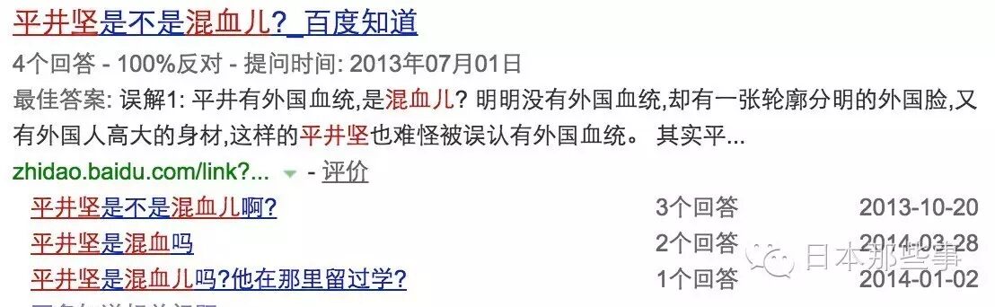 搜平井坚的名字跳出来的第一个关键词就是“混血”...