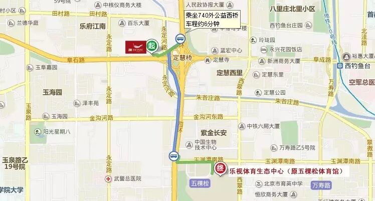 从酒店步行约400米至公益西桥站乘坐97路、运通115线、740外环线等多路公交,一站到达五棵松桥南站下车即到场馆 。