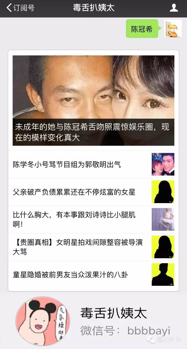 任泉现在自己的商业帝国做的比较大,所以才决定彻底息影,以后专注投资不再演戏,而周杰也更多在幕后,当年的周杰任泉cp一去不复返啊。 情深深雨蒙蒙里的尓豪在琅琊榜里增肥演了草包太子,实际上高鑫才是真太子呢! 高鑫爸爸是当地酒店的老总,他结婚那个酒店就是他爸爸的。 这个项目是湖南台今年一个特别上心的项目!毕竟选秀很多年没做了,上一次选女生的比赛甚至要追溯到2011年。所以从代言人上就下了很多功夫!十二年过去了,且不说看过第一届2004年比赛的小孩了吧,就是看当时最轰动的2005年的小孩现在都至少已经上了大学,成年了!真的超级女声重启,一部分是商业,一部分就是90后的记忆! 之前扒爷说过,和锦荣感情现在很稳定!私下 蔡依林一点点架子都没有还很谦虚,也很爱笑,但确实身高不高,皮肤有点黑!如果再说不好的话,可能就是蔡依林是深绿,支持蔡英文的! 陈大大要复出了小婊贝们知道吗?这次是加盟影版《三生三世十里桃花》做特约出演 。已多年不涉足影视行业,专心自己的话剧舞台的陈佩斯回归真的很值得期待的!扒爷童年被扒爷的爸爸一起带着看陈佩斯啊! 有想看的八卦记得留言呀,扒爷看心情翻牌子! 有爆料也可以在后台留言,#爆料# 加内容就可以! --------------我是扒爷的分割线-------------- 看扒爷一个人讲八卦腻不?来关注扒爷CP,毒舌扒姨太吧!一手明星猛料,时尚小公举,最浪毒舌妇就是她! 关注后回复关键词:【陈冠希】 就有猛料哦!